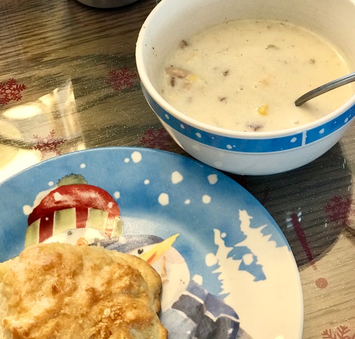 1200 – 1400: i stopped at my mom’s for a quick visit before running errands.. lucky for me i came at lunch time and ate some homemade corn chowder which was amazing.