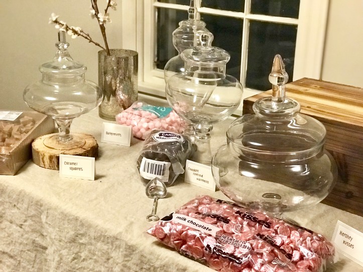 1600: i started prepping a candy table for our upcoming bridal expo in january.
