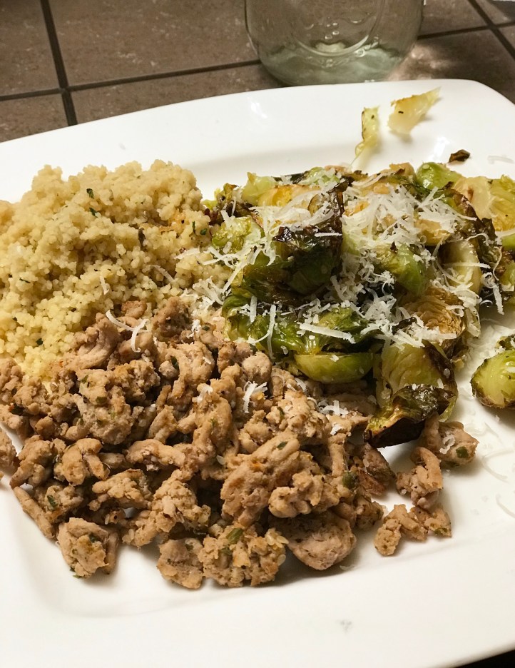 1800: dinnertime which consisted of ground turkey, couscous and roasted brussel sprouts.