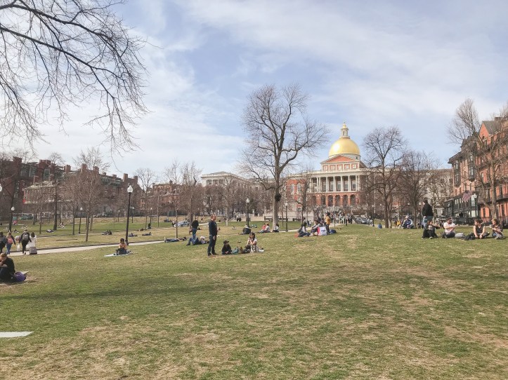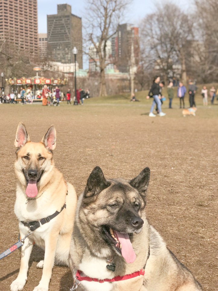 As we wandered with no real direction, we came upon a section of the park filled with dogs playing off leash. It was unreal! Smack in the middle of the city and all these dogs stayed on one patch of grass and played with their friends! Riley and Mya enjoyed meeting friends (and were slightly overwhelmed) but, unfortunately, were stuck next to mom and dad because they don’t know how to listen when the leashes come off.. and we didn’t feel like chasing them around Boston for the rest of the day.