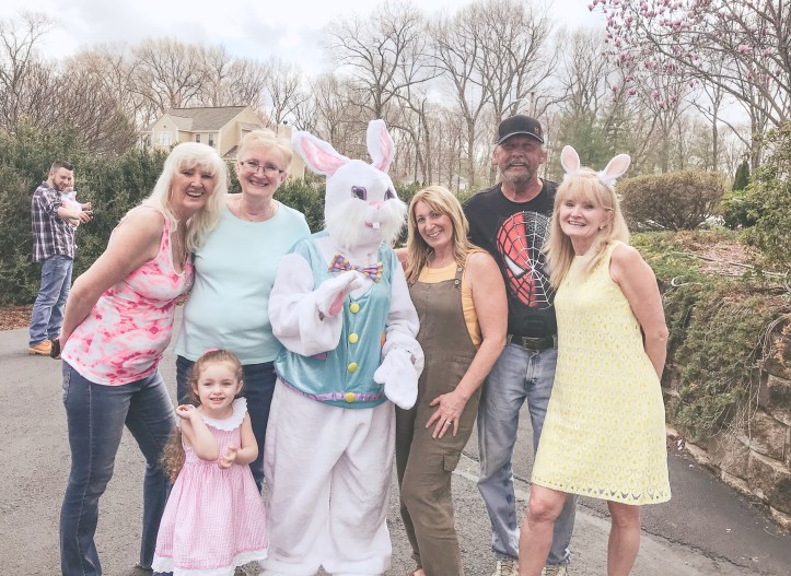 After Grandma’s my brothers and I headed to my Mom’s house where she was hosting a celebration with over 30 people. It’s rare for my cousins (and their kiddos) to all get together at the same time but this Easter we somehow managed! The Easter bunny even made an appearance (poor Easter bunny was dying.. the sun was WARM) and the kids were loving her!