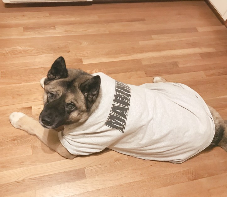 Miss Mya has a been recovering (for months) from a skin condition and living in t-shirts so she doesn’t keep irritating herself.. she makes sure to grumble at us every day when we change her shirt but she definitely knows how to rock them.