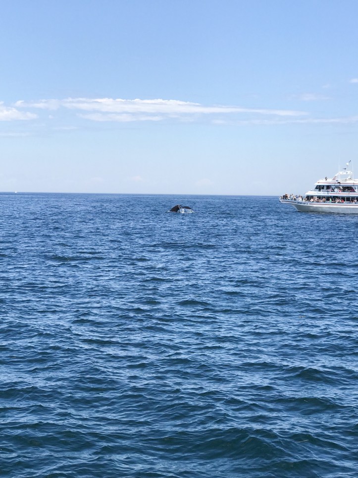 If you plan to go on a whale watch.. even in the middle of summer.. make sure to bring a sweatshirt and sunblock! It was nearly 90 degrees outside but the breeze on the open ocean while cruising 30mph was chilly. And, you forget the sun is so brutal because you’re cold, so inevitably you’ll end up with a sunburn if you’re not careful!