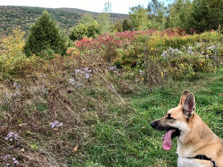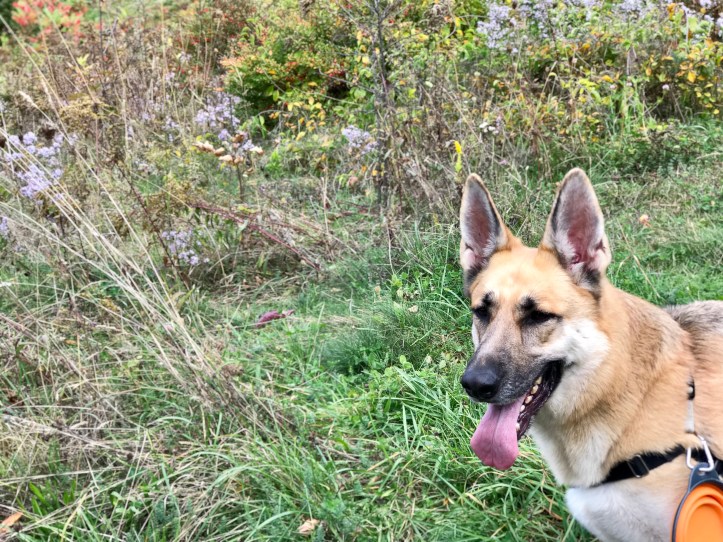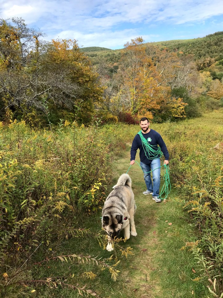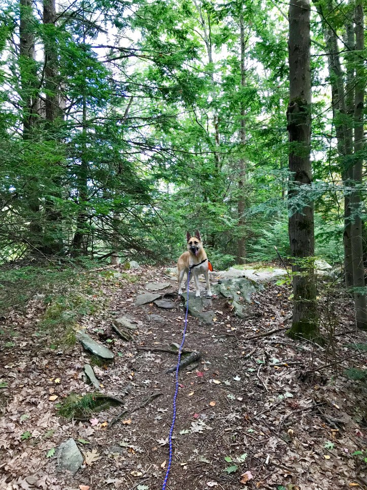 The afternoon we arrived we headed straight to Cobble Hill for a hike and some fresh air. Hubby recently purchased 100 foot ropes to assist him in letting our dogs outside (they would run away if we let them out off leash) when he isn’t able to walk so we brought them along… but we learned quickly that he probably could have gotten away with slightly shorter ropes! We clearly had more than we knew what to do with and our dogs didn’t stray more than probably 20 feet away from us. Anytime they’d start to get too far ahead, both would stop to make sure we were keeping up before they’d continue on the paths.