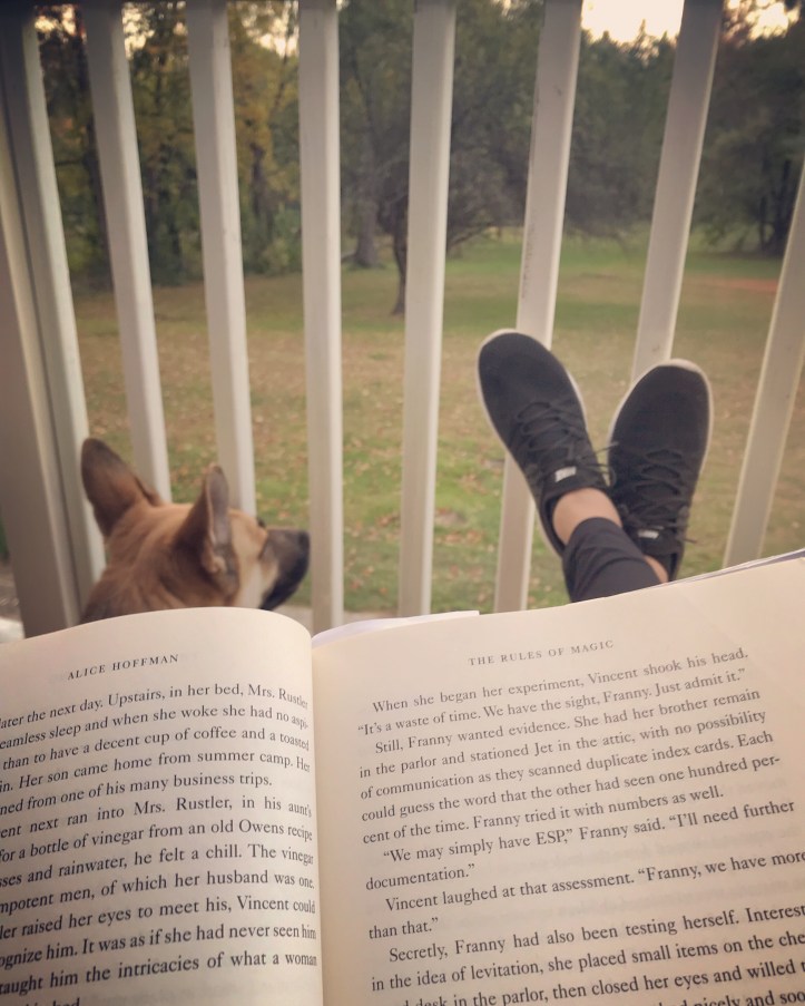 Unfortunately our plan to spend the trip outside was rudely interrupted by lots and lots of rain… which was a blessing in disguise because it forced us to do nothing and actually relax most of the time. We spend lots of hours reading which is something we’ve both gotten into lately and I’m loving it. There is something about a book that can transport you to another lifetime or world that wraps me up every time… never mind when I get to do it on a covered porch as rain falls around us.