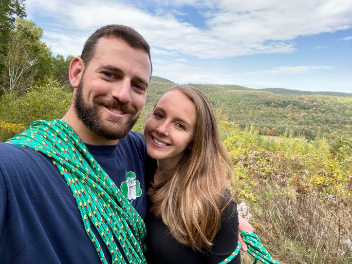 The afternoon we arrived we headed straight to Cobble Hill for a hike and some fresh air. Hubby recently purchased 100 foot ropes to assist him in letting our dogs outside (they would run away if we let them out off leash) when he isn’t able to walk so we brought them along… but we learned quickly that he probably could have gotten away with slightly shorter ropes! We clearly had more than we knew what to do with and our dogs didn’t stray more than probably 20 feet away from us. Anytime they’d start to get too far ahead, both would stop to make sure we were keeping up before they’d continue on the paths.
