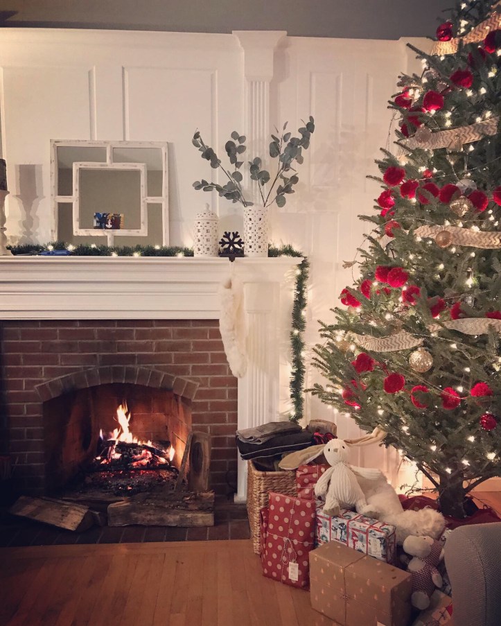 When we got home, hubby made us a fire while I popped popcorn and poured some wine.. we snuggled up on the couch in front of our tree to watch “Home Alone” before heading to bed.