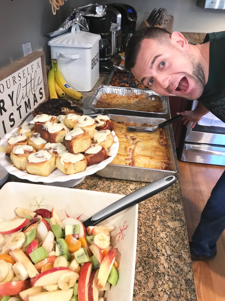 We host brunch on Christmas morning for some of hubby’s family, my dad’s side and my brothers.. so much food and, most importantly, my homemade eggnog cinnamon rolls which were delicious!