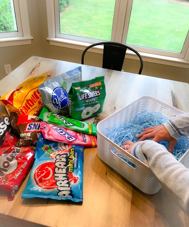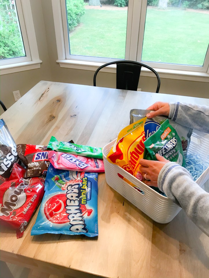 And if you’re feeling extra sweet, recreate and deliver this simple basket of treats. It’s super easy to put together and a little candy is sure to brighten anyone’s day.