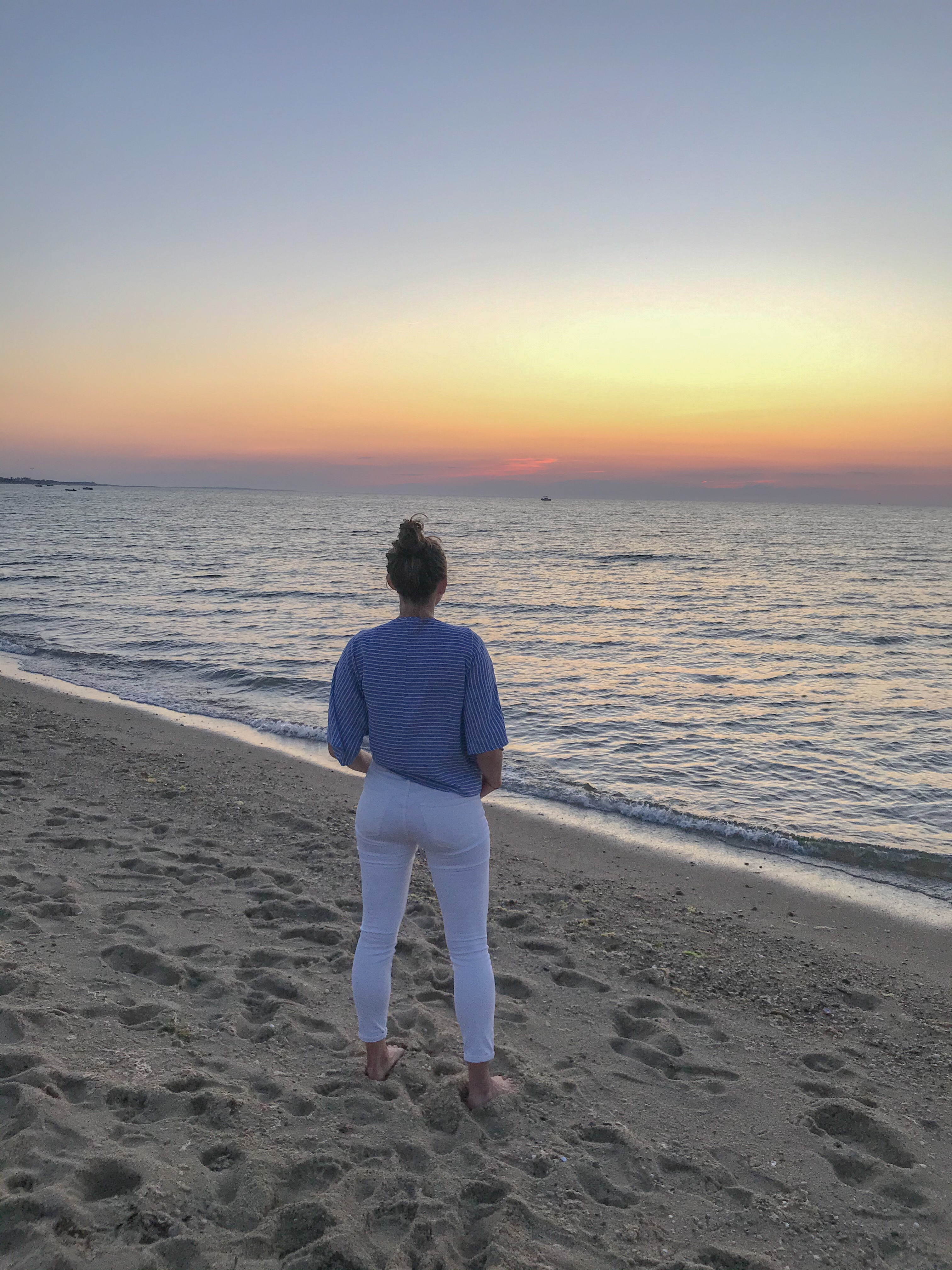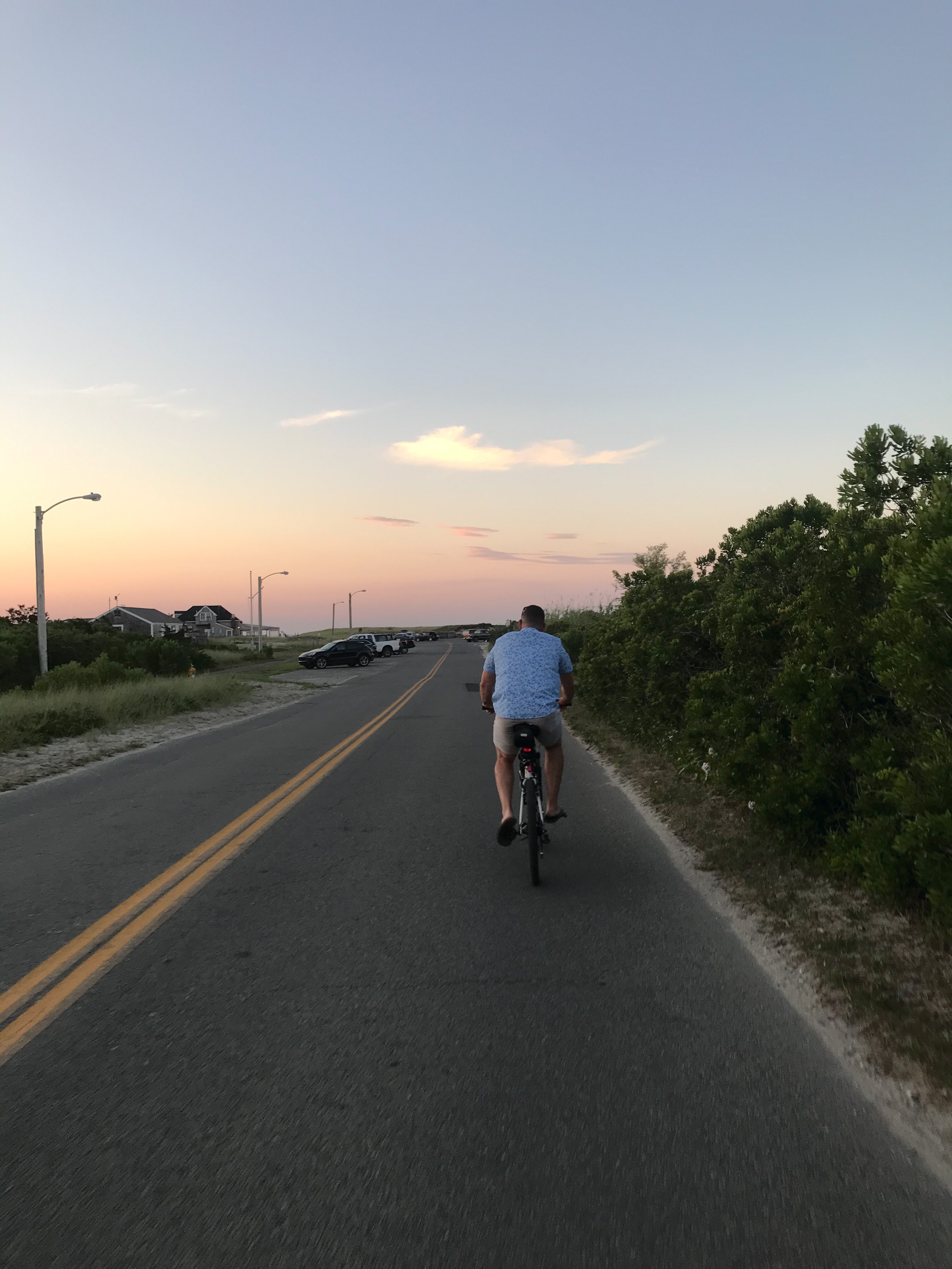 Tuesday we jumped on our bikes and headed to my favorite part of Nantucket, ‘Sconset. When we arrived, we grabbed some coffee and a blueberry muffin at the market before heading to the bluff walk and then the beach. Before the 8 mile bike ride back to town, we grabbed sandwiches at Claudette’s and headed to our room for a glorious nap! We tried a new restaurant, Pi Pizzeria, for dinner. The mozzarella sticks were out of this world, the pizza and chicken parm were good, not great. After dinner, we jumped back on the bikes and road as fast as we could to the beach.. literally chasing the sunset. But, if you don’t know, Nantucket is known for its fog and therefore beautiful sunsets are not frequent. But Tuesday night.. Tuesday night was mesmerizing.