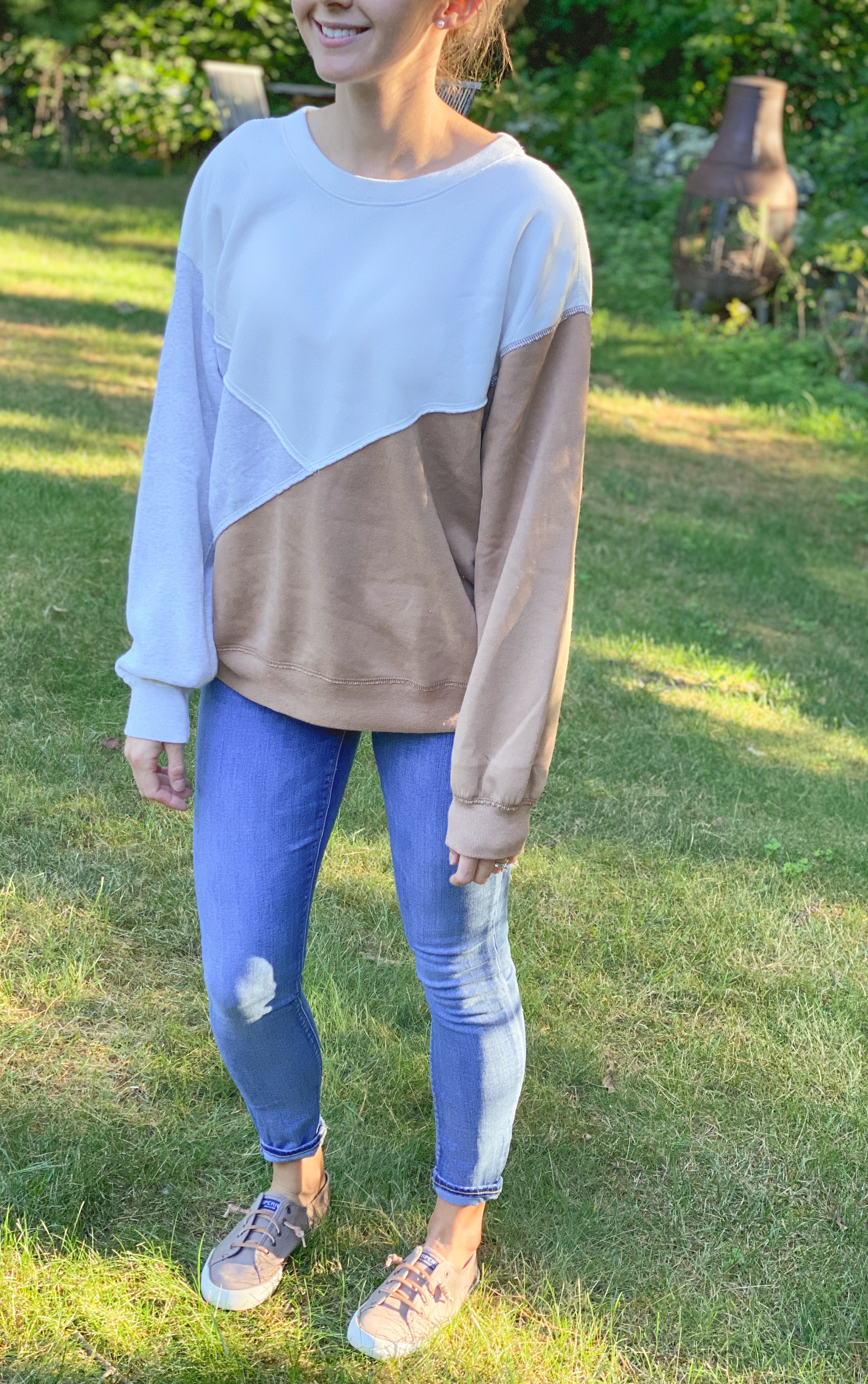 Colorblock Sweatshirt .. the same fit as the first sweatshirt I showed but just in different colors.. yes, I probably didn’t need to buy both but they were too cute to pass up. And this one is on sale for under $20 right now!