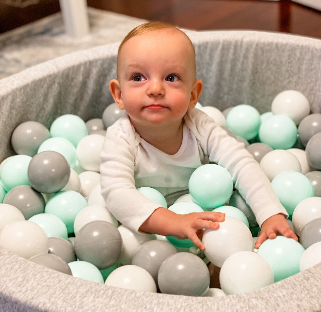 Followed by playing in his birthday present from Mama and Daddy! The jury is still out whether he actually like the ball pit or not…