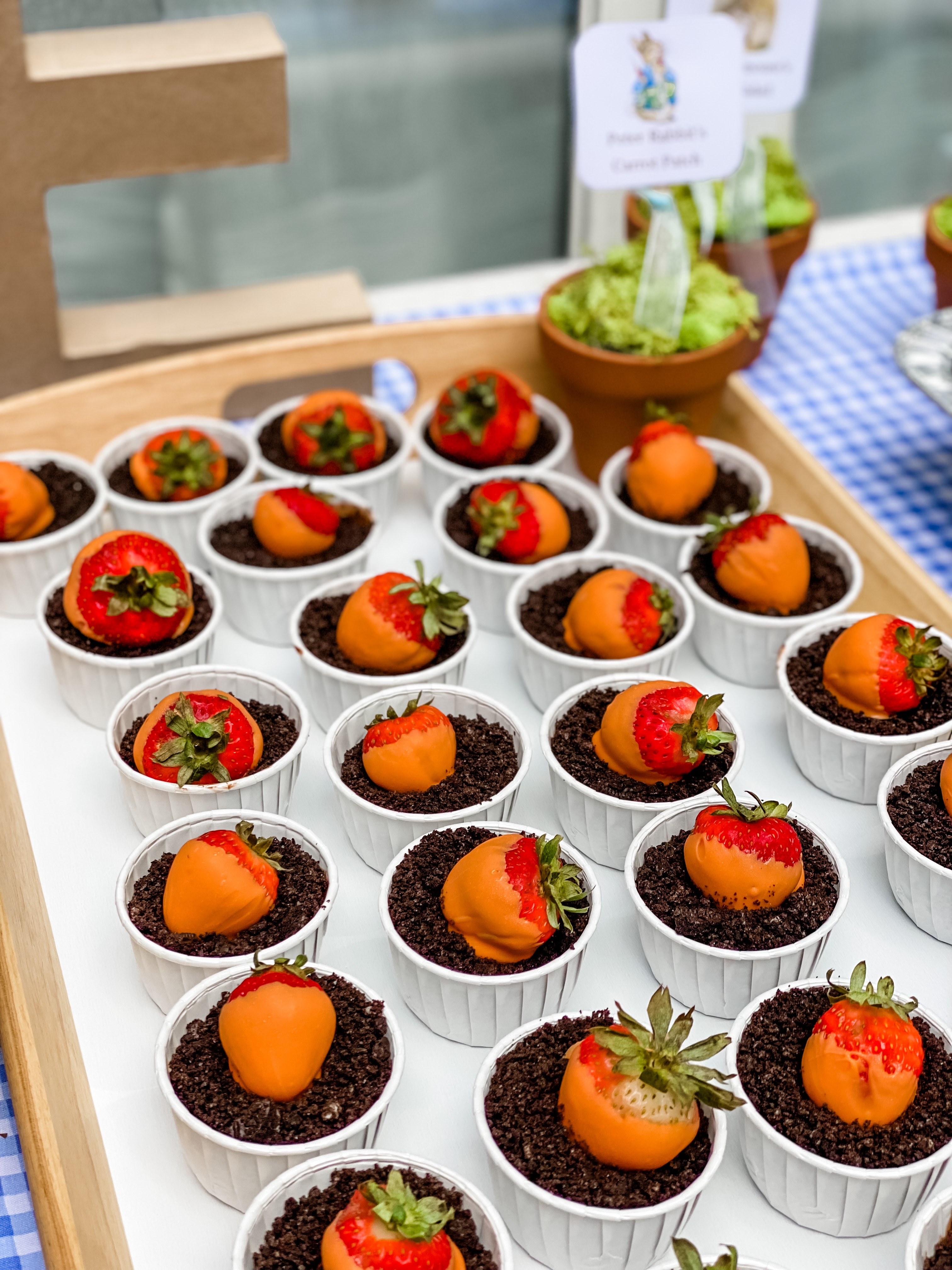 The carrot patch was chocolate pudding, topped with crushed Oreos and an orange chocolate dipped strawberry as the “carrot.”