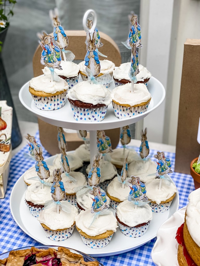 For those of you interested in some party details… I didn’t take many pictures but here are a few. I made all the signs and Peter Rabbit cupcake toppers on Microsoft Word, printed them on heavy paper and hot-glue-gunned them to sticks.