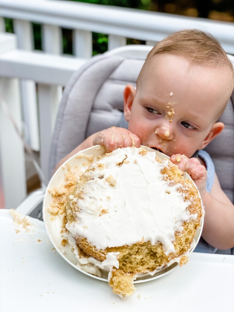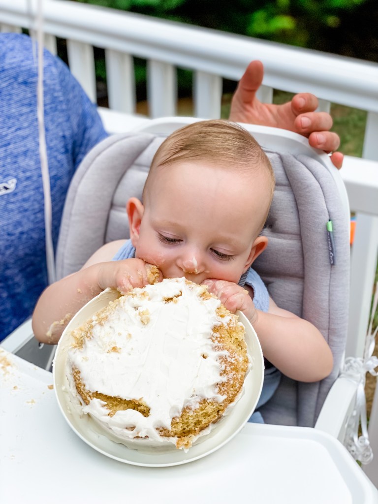 Jackson had lots of help from his cousins during the cake smash and preferred the plastic plate over the actual cake (teething is a real you know what) but was so much fun to watch. He was covered in cake from head to toe by the end… we threw him in the sink for a quick bath and eventually hosed off his highchair (there was cake in every crevice)!