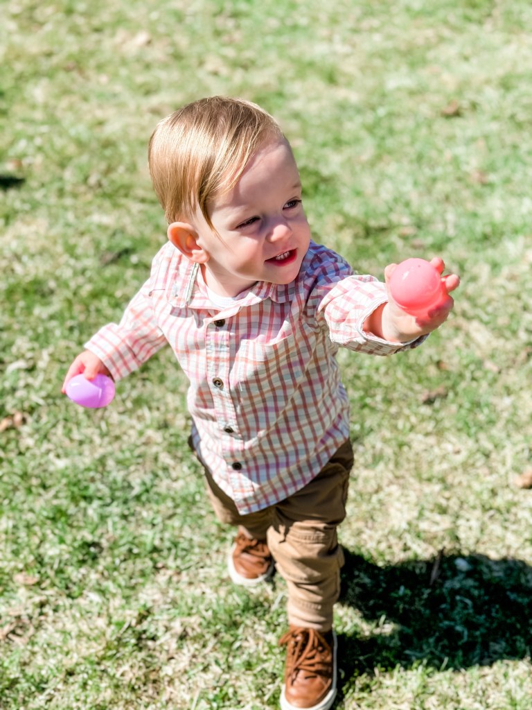 It’s wild how much can change in one year… how much our little ones grow and develop in just 365 days. From barely able to keep his head upright last Easter to running around with his cousins and gathering Easter eggs this year, Jackson has changed so much. It’s such a blessing to witness him developing, growing and exploring. Each milestone, each new discovery, each first time… each one is precious.